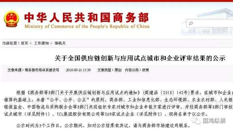 9月21日,商務部網(wǎng)站公布我國55座城市、269家企業(yè)為國家級供應鏈創(chuàng)新與應用試點,湖南湘佳牧業(yè)股份有限公司被商務部、工業(yè)和信息化部、生態(tài)環(huán)境部、農(nóng)業(yè)農(nóng)村部、人民銀行、市場監(jiān)管總局、銀保監(jiān)會、中國物流與采購聯(lián)合會等8部門授予國家級供應鏈創(chuàng)新與應用試點企業(yè)。