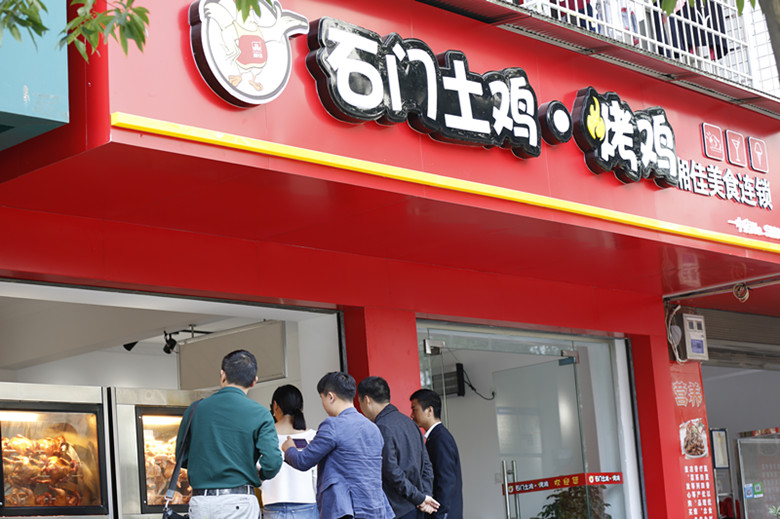 蕢鶯春女士一行來(lái)到石門土雞烤雞石門一中烤雞店觀看石門土雞烤雞的烤制過(guò)程