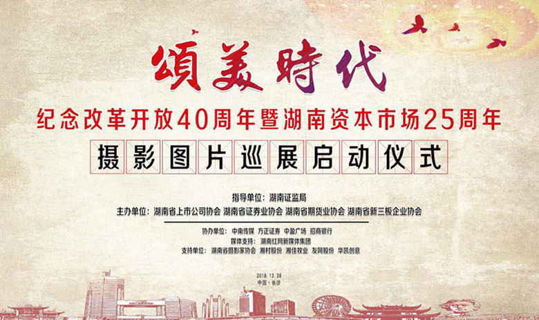 1228日,“頌美時代”紀(jì)念改革開放40周年暨湖南資本市場25周年攝影圖片巡展啟動儀式在長沙泊富國際廣場拉開帷幕,湘佳牧業(yè)董事長喻自文作為特邀嘉賓出席了啟動式,并為獲獎作者頒獎。