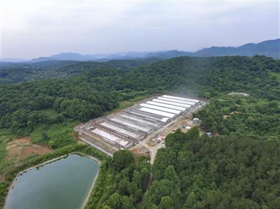 周邊群山環(huán)繞,綠水長流。施工現(xiàn)場,一眼望不到盡頭。挖掘機(jī)左右運(yùn)轉(zhuǎn),攪拌機(jī)上下翻動(dòng),運(yùn)輸車來回穿梭。 民工們有的在搬運(yùn)水泥,有的在運(yùn)送磚頭,有的在彎腰砌墻。整個(gè)現(xiàn)場,一排繁忙景象。 這里是湘佳股份單場規(guī)模最大的家禽養(yǎng)殖基地——湖南省石門縣夾山鎮(zhèn)西周村養(yǎng)殖基地。 西周村養(yǎng)殖基地是湘佳股份1250萬羽優(yōu)質(zhì)雞四大養(yǎng)殖基地中規(guī)模最大的一個(gè),該基地建設(shè)總面積近10萬平方米,總投資愈億元,在建籠